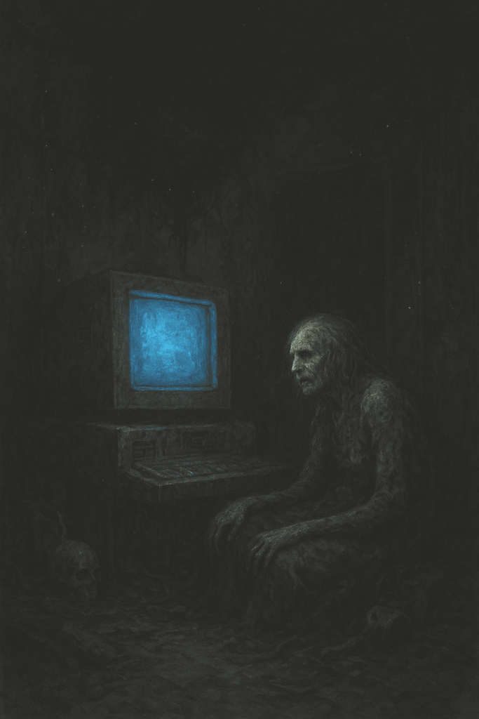 El hongo seguirá cayendo. Los techos se cubrirán de una capa de moho digital, las camas parecerán tumbas. Algunos comenzarán a tatuarse el cuerpo con códigos binarios, convencidos de que así la Computadora podrá leer sus pensamientos. Otros quedarán con los ojos enmudecidos, o con la cordura mal compilada, o ambas cosas.