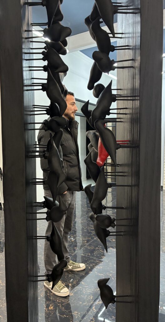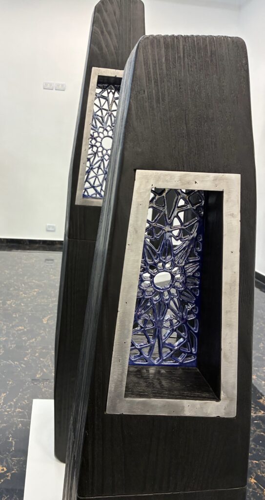 Escucho esta narrativa poético artística como quien “cierra los ojos” y se deja acunar por el elogio de los materiales y concepciones nobles que los Cimarrones utilizan a lo largo y dentro de su obra artística. Hay un silencio ético y estético que parece venir/ llegar de las entrañas mismas de las formas talladas y esculpidas como así también, de los propios vacíos y huecos/recovecos que se abisman y se acoplan a los claroscuros de la obra. Y entonces, en ese “parpadear luminiscente” de la revelación artística, se percibe la paradoja entre lo que se ve y lo que se oculta. Ese margen irreductible y punzante que nos permite adentrarnos en una especie de ensoñación con la materia y la palabra viva de la obra que esculpe lo que está en la superficie y por debajo. Y entre cielos y tierras naturales y originarias; entre trazas y cristales “adormecidos” aquellos reflejos velados, los grados de opacidad de los materiales y el silencio. De la penumbra del espacio vacío (no nombrado). Al decir del japonés Junichirò Tanizaki: tal es, en efecto, el resultado de la silenciosa armonía entre el brillo de las velas que parpadean en la sombra y el reflejo de las lacas. Y de las sombras luminosas, pienso, la belleza en aras de captarse por alguna rendija, y que nos deja en un estado de trance.